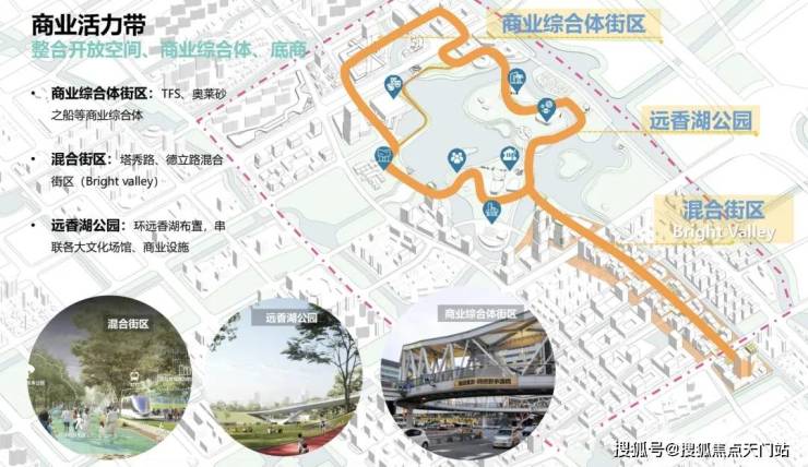 优先发展功能复合度高, 主题特色、体验性强的商业类型 ,形成辐射长三角的独具文化魅力和时尚活力的 区域商业中心: 包括 北部商业综合体街区、中部远香湖公园商业示范区、Bright Valley区域文化中心 ,形成区域交通便捷通达,局部商业集聚、功能互补的商业功能区!