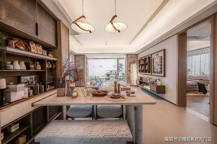 高拓空间 :配备独立L型玄关柜,满足归家收纳需求;预留超长餐边柜位置,兼顾展示与储物,进一步释放生活尺度,提升居住品质。