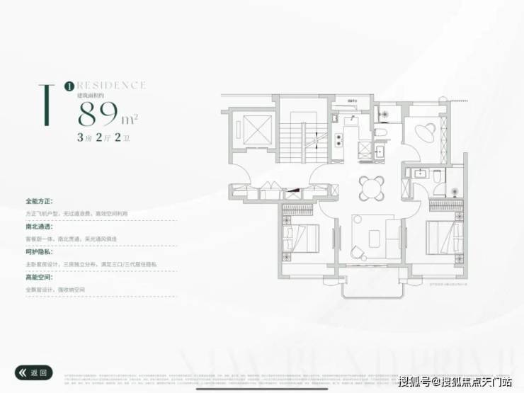 正三面宽朝南,观景阳台+满飘窗配置,提高实用空间,也拓展视觉体验。