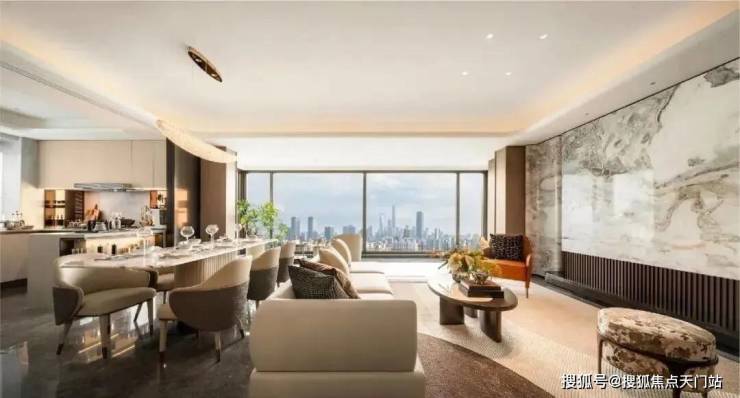 整整接近4m²的270°玻璃幕墙,带来无遮挡的广阔视野,搭配 华为智能家居和 电动窗帘,每天被城市天际线或自然景观唤醒,这种体验无可替代