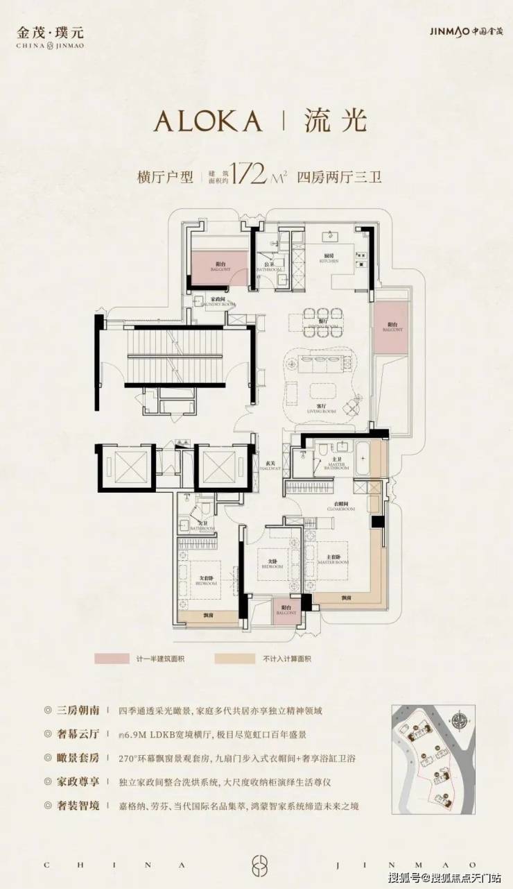 在建面约172㎡户型中,我们可以看到金茂对 “三代同堂”生活方式的深刻理解!