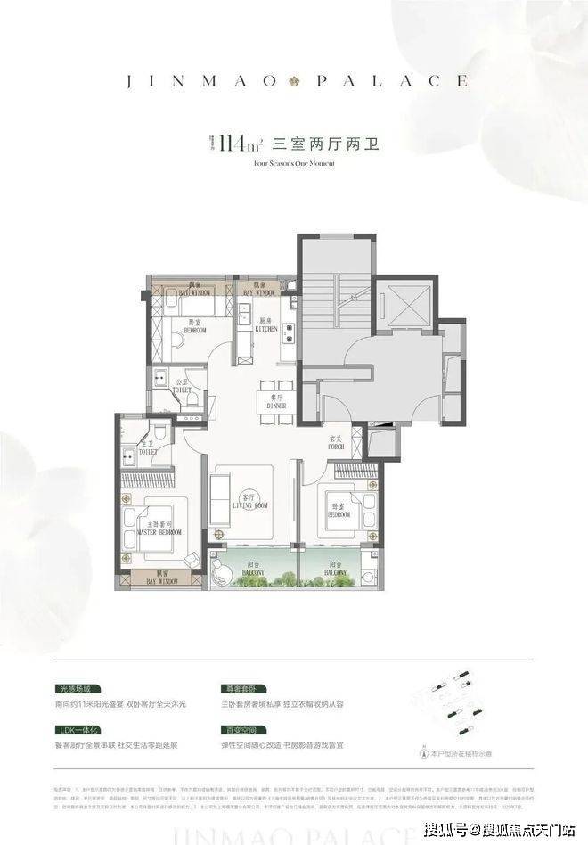 100㎡以上户型双卫已成标配,144㎡以上多见三卫。
