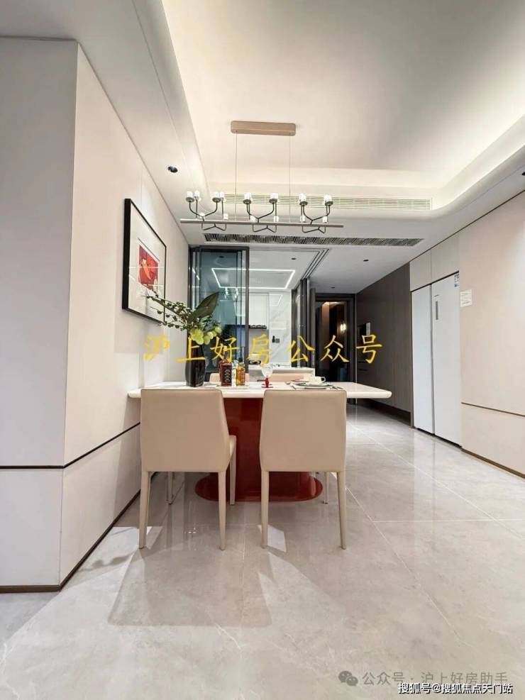 建面约105㎡3房户型,总价350万级即可上车!堪称同等总价段的改善天花板!三开间朝南,约9.6米大尺度南向面宽,最大程度揽光入室;客餐厅一体化 ,连接厨房和南向阳台,动线流畅,也是更大的欢乐聚场;创新研发S墙设计,预留冰箱专属位置,释放厨房使用空间 ;主卧套房设计,奢享独立卫浴和衣帽间,尽享尊崇。