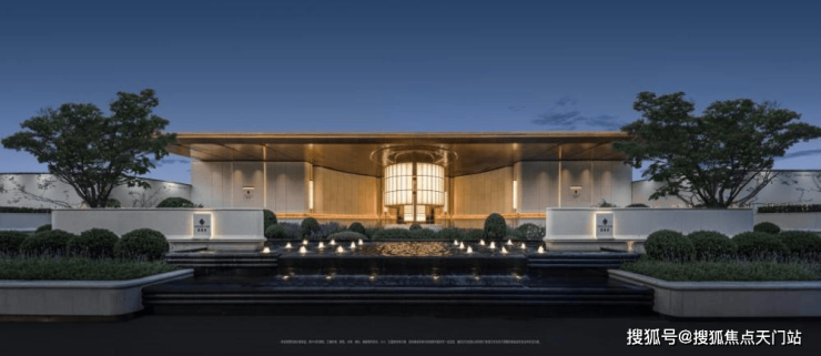 不同于寻常项目,招商序打造了约4.5m高的迎宾楼,玄关左右两侧均可通行,且各建有一处会客区域。还精选朴树、油橄榄等名贵树种植入门头两侧,呈现出对称美学。