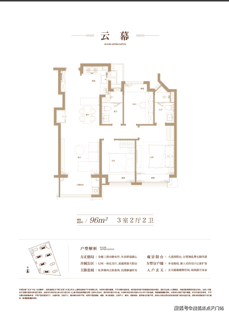 建面约96㎡,充分从居住者的角度考量生活动线、舒适度与生活感。S型的分户墙,褪去呆板,为家具预留更多的空间;LDK一体化的设计打破空间局限,解锁更多的生活场景,也拉近家人间的距离;主卧套间自在独处,生活的优雅时刻尽显……