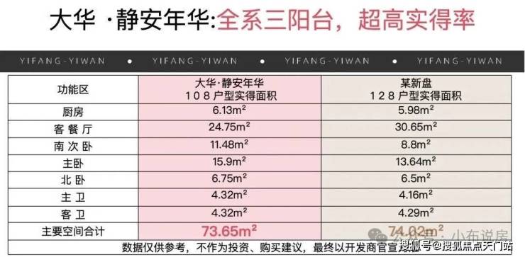 项目108户型的实用面积 ≈ 同期市面上128户型的实用面积