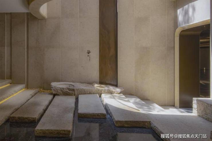 越秀外滩樾的公区庭院非常精致,其精心打造充满禅意的山水庭院。
