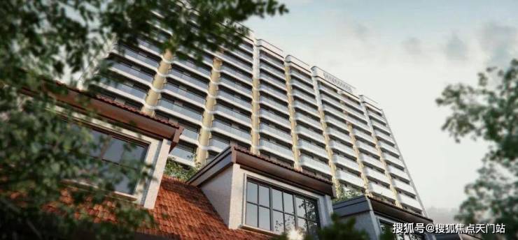 项目高层立面的设计灵感源自武康大楼的曲面弧形。在保证现代化居住舒适性的情况下,呈现经典的曲面转角、Art-Deco法式装饰阳台以及经典的三段式黄金比例运用。