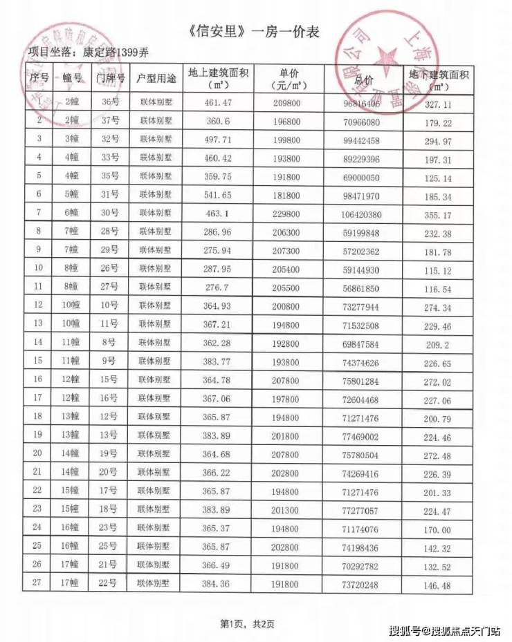 一房一价表