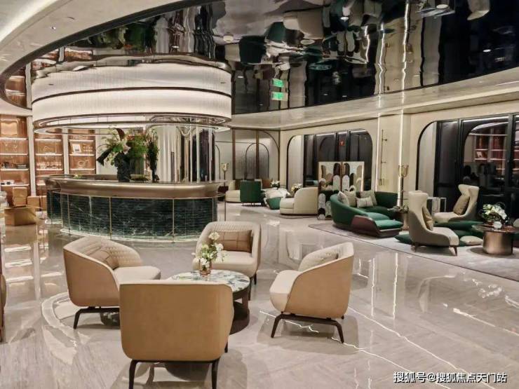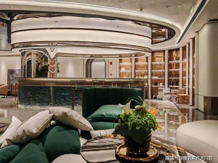 N+奢石铺装,从地面到公区,地下三层入户大堂荟萃普拉达绿石材、温哥华海石材、东方白石材、莫奈灰石材,特殊玻璃等,大手笔低营造调奢华的空间气场。