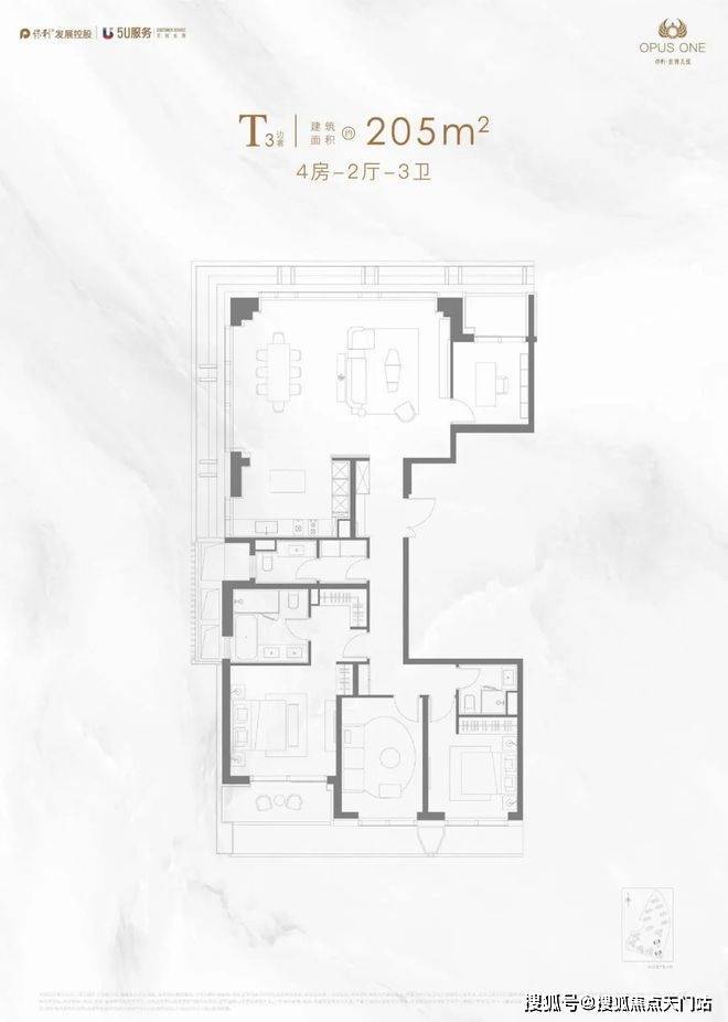 建面约174㎡ 在做到极致观景面的同时, 主卧面宽高达约5.7米 ,媲美别墅居住体验。