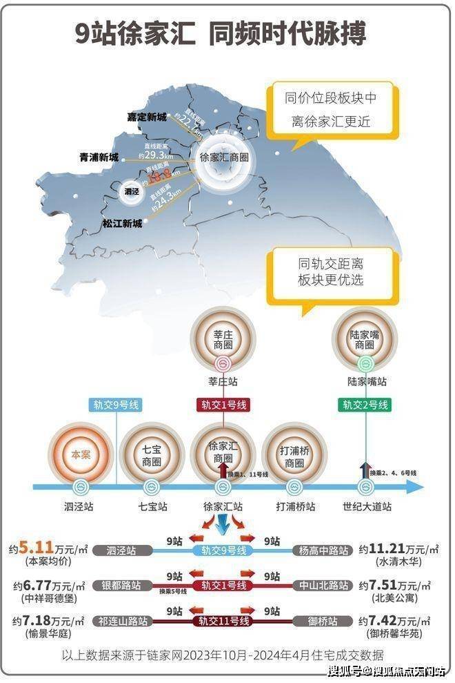 而如果 以徐家汇作为锚点、同样以9站地铁作为半径,泗泾也是价格便宜的板块,价格上便宜了一大截,通勤时间或还更近一些。