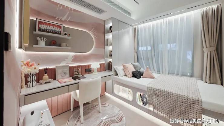 主卧、次卧、主卫、次卫都做了飘窗设计,很好地延展了空间感,美观又实用。得房率很高。不封阳台,相当于是赠送一半面积,实打实省钱。