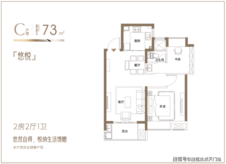 建面约73㎡悠然两房:悦纳生活馈赠