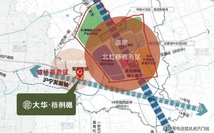 虹桥是“2035战略规划”明确的主城片区,嘉定占位虹桥国际开放枢纽“北向拓展带”,定位为上海大都市圈的现代化新型城市,拥享商务区发展辐射利好,全面承接大交通、大商务、大会展等溢出效应。