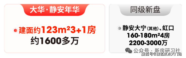 4房同样如此,市面同类产品普遍建面160-180㎡,总价2200万起步;大华·静安年华 123㎡“3+1”房,总价1600多万 ,既满足大家庭“一步到位”的需求,又大幅降低了改善成本。