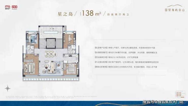 市面上大多百平小三房,都是“伪”三房,实际使用起来空间十分局促。国贸海屿佘山户型设计优点:客厅阳台约 270度采光体系+南向双飘窗+北房间也能够作成卧室,无连廊的飞机户型, 整体的得房率做到了78-80%。