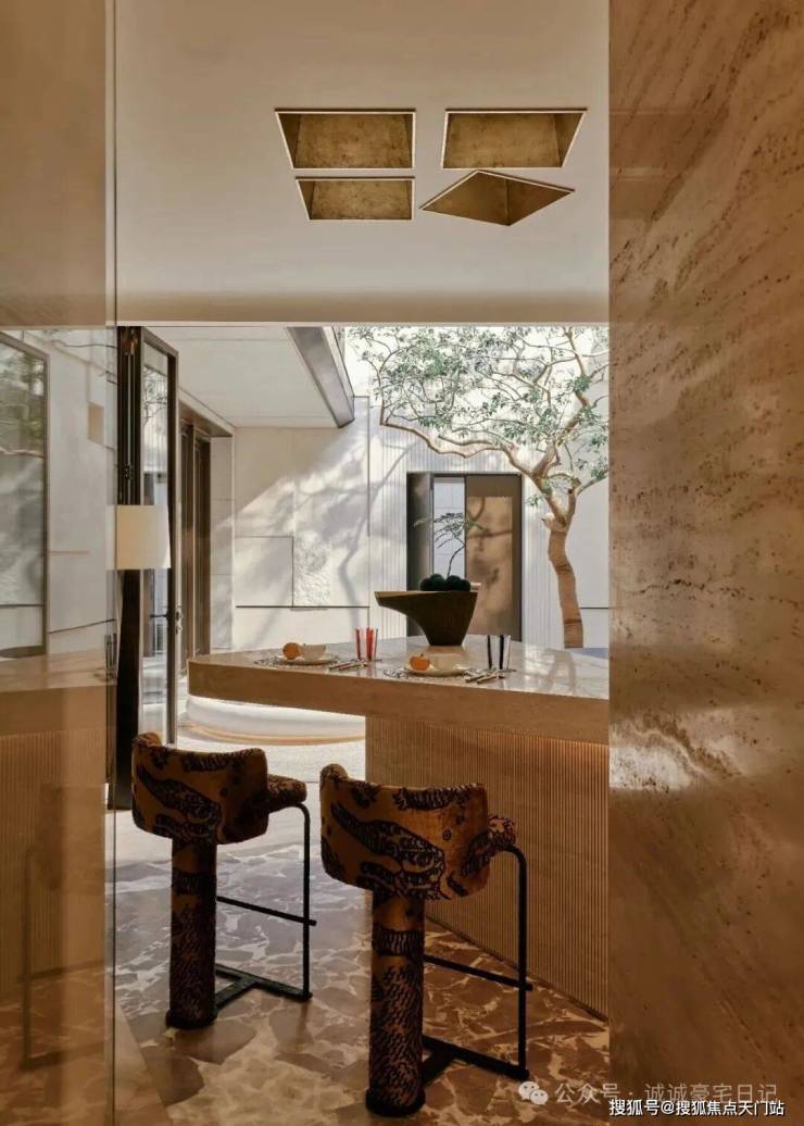 从闹市中步入狭长小径,及至打开自家院落大门,一方庭院映入眼帘,在寸土寸金的闹市中显得弥足珍贵。一汪极简主义的泉流成为点睛之笔,它如许清澈,如许淡然,也如许神秘,抚平都市喧嚣带来宁静。