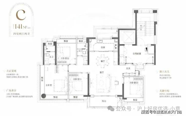 比起市面上普遍的三开间朝南动静分区户型,该户型至少有3大爆点: