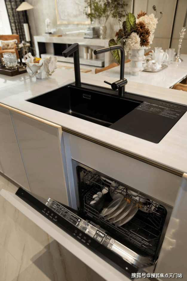 水槽下方预留了电源与空间,为加装净水器、扫地机器人做好准备。