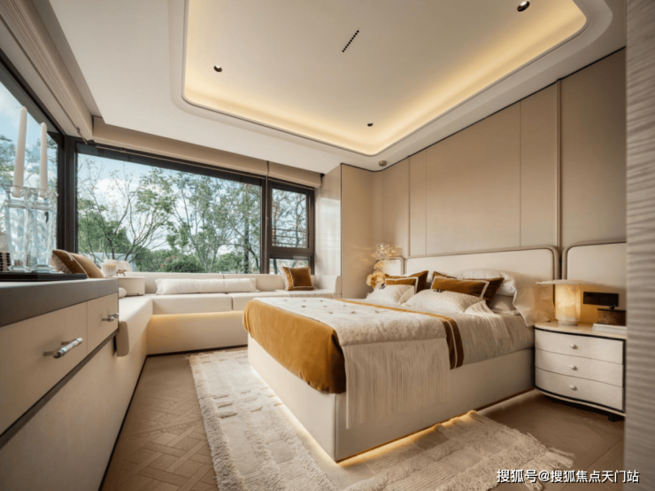 结合局部 弧形玻璃与 超大窗墙比,真正实现了“引景入室”,让家变成公园的观景台,重新定义了居住的视野界限。