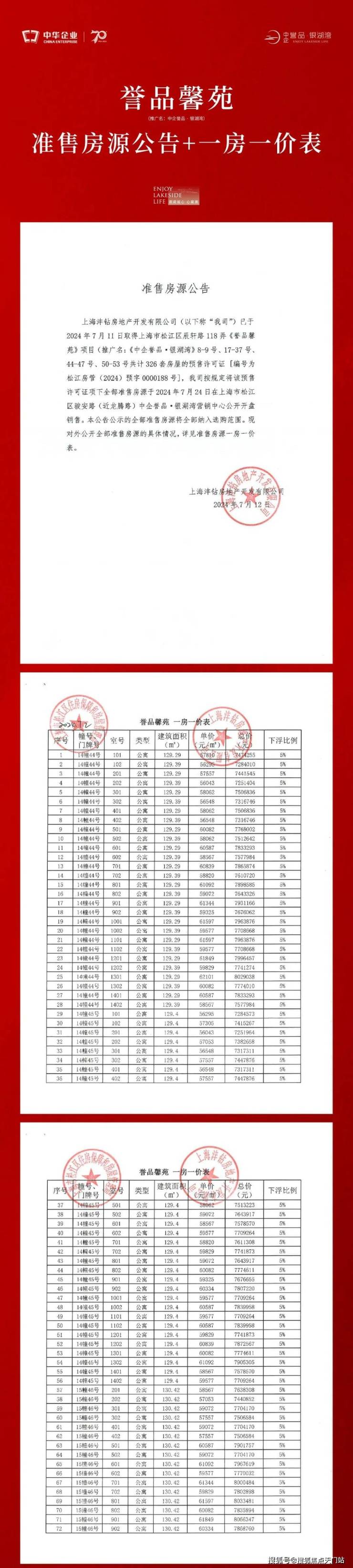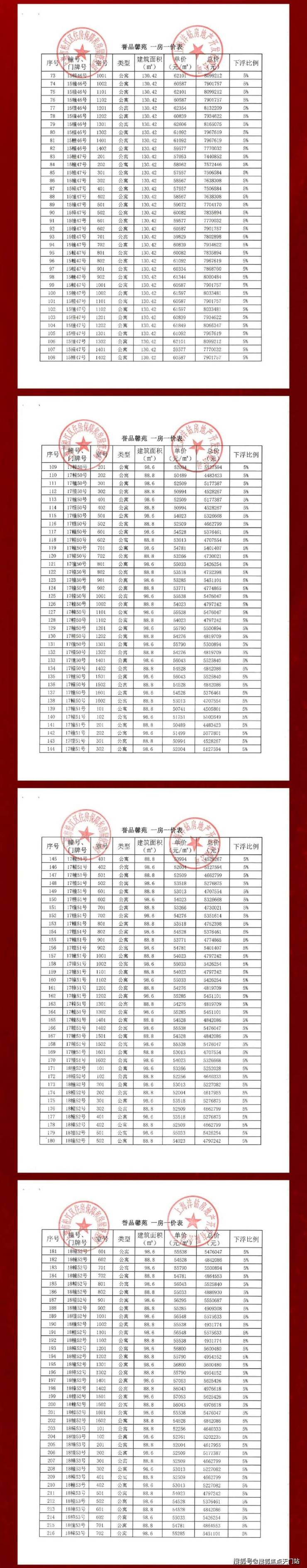 一房一价表如下: