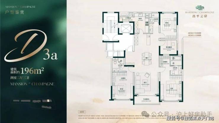 此户型最靠近苏州河,特地设计了270度转角阳台直面苏河一线景观!4个套房设计,尊崇感十足!此户型仅有6套,珍藏属性拉满!