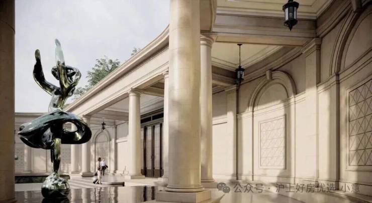 项目以现代设计语境新译蘭香艺术臻境,让建筑成为“可以居住的艺术品”。约32米归家礼序门庭,以14根多立克柱式列阵,缔就层峯归家的“隆重感”;以切尔西公寓的“三段式”美学立面,通过黄金比例分割与横向线条延展,将英伦百年美学凝练于建筑肌理;建筑细节融入斯卡帕叠级,光影流转中共谱空间韵律;跨越万里甄选的四大臻贵奢石,经“制表”级手工打磨,以毫米级拼缝铺装,让永恒之美凝固于方寸之间。