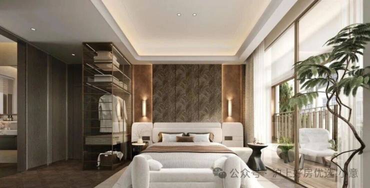 主卧建面约25㎡,自成一方小天地。除了设计有干湿分离的卫浴空间,还特别打造了步入式衣帽间,满足主人的“收藏欲”;加之南北通透的布局,连接双联阳台,阳光浸润生活,清风鲜活呼吸。
