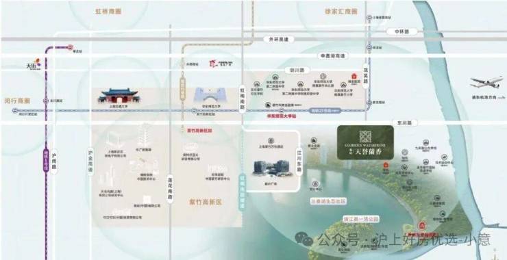 交通方面:15号线紫竹高新区站约2公里,23号线华东师范大学站约700米,虹梅南路约1.1公里;