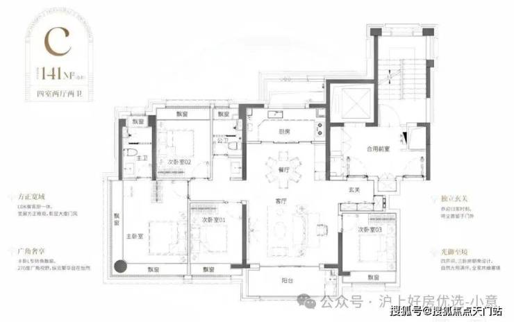 比起市面上普遍的三开间朝南动静分区户型,该户型至少有3大爆点: