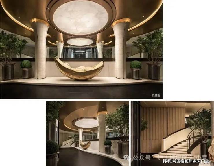 一汪深邃的 「宇宙之心」漩涡水景 ,灵感源自梵蒂冈博物馆举世闻名的双螺旋楼梯,模仿宇宙星系流转的宏大景象,纳藏天地万物生生不息的力量。