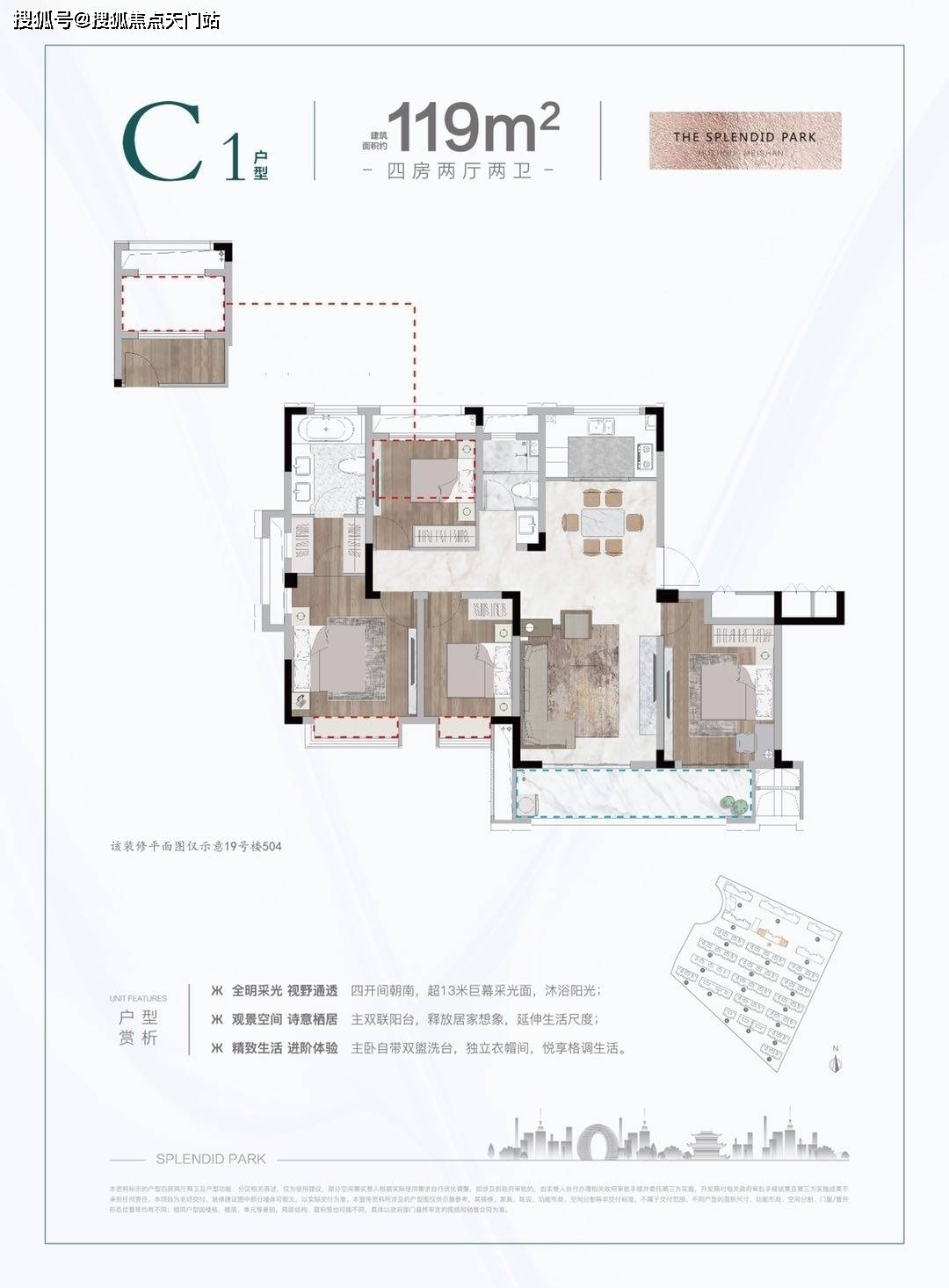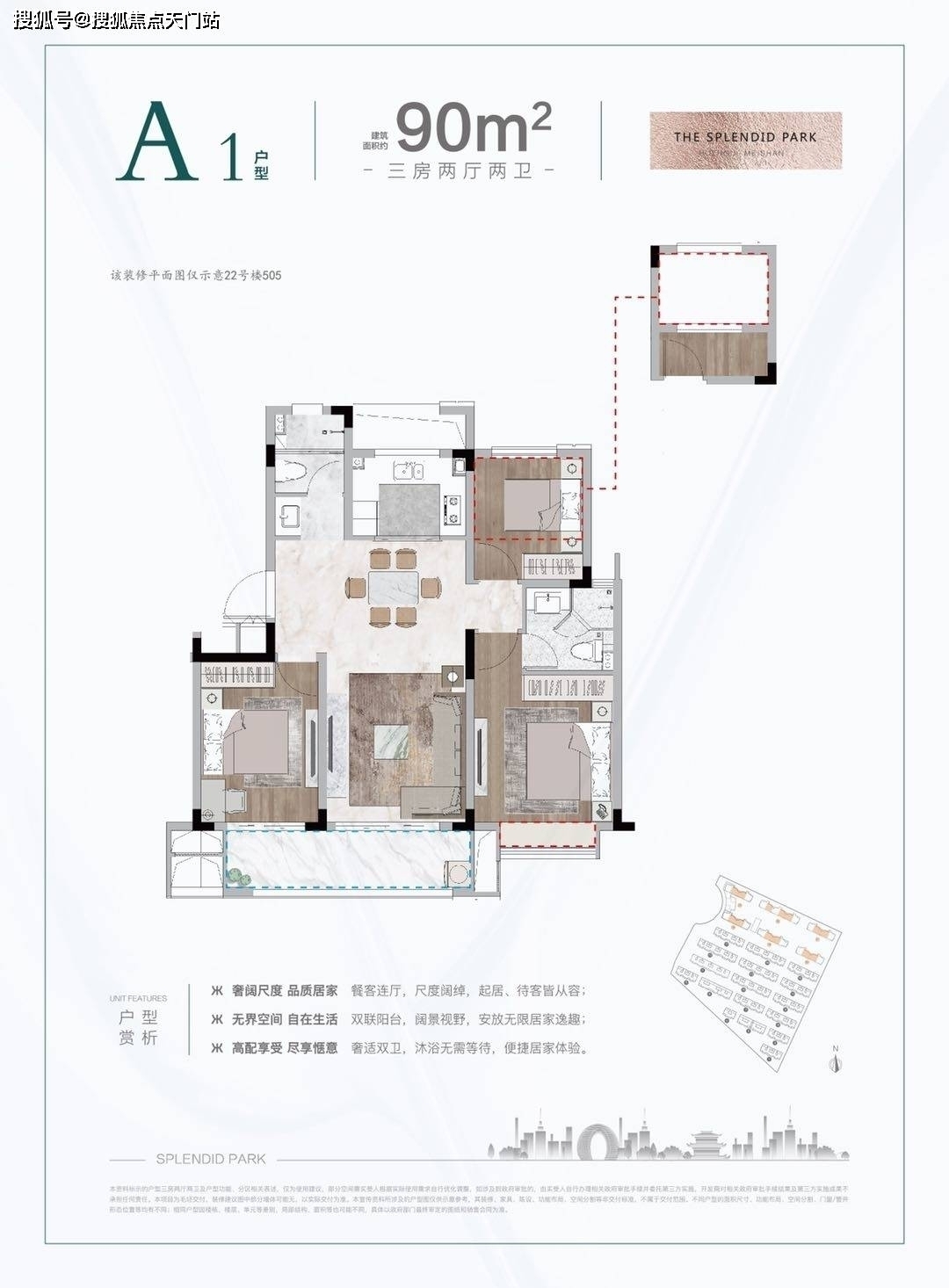一梯两户,得房率84%(不含赠送),赠送面积约10㎡