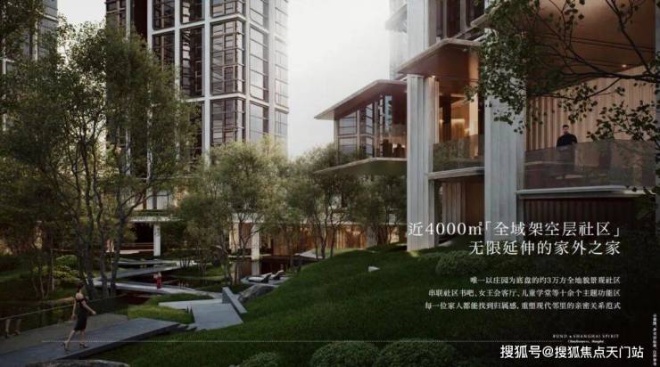 第三重:落差近13米的立体峡谷 :项目最大的亮点之一,是在近万方景观底盘上,打造了落差约13米的“自然峡谷”。通过艺术化的地形处理,将滨江之丘、临江之水“搬”到了楼下,形成令人震撼的视觉冲击。