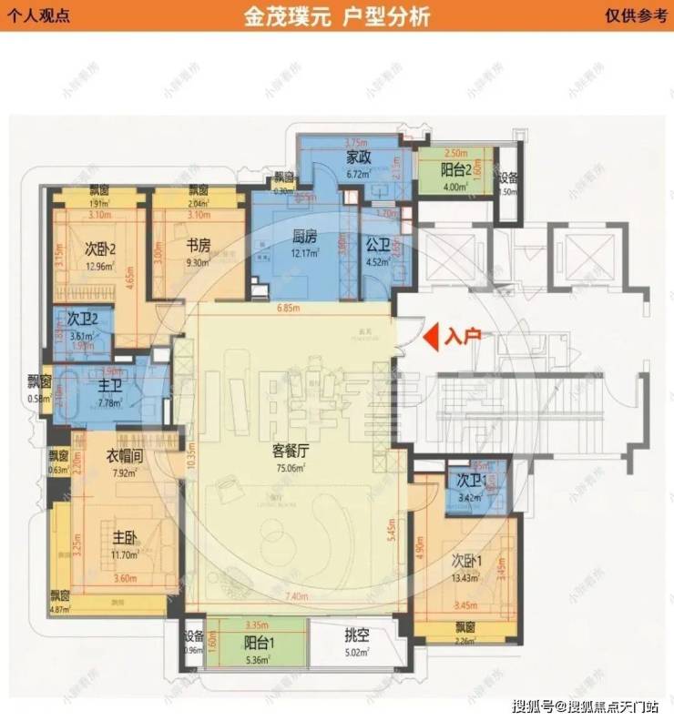 电梯间能拓展一定的使用空间。入户门朝外开,对户内通行空间无影响。