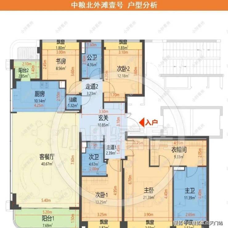房间布局上,两间卧室朝南,一间次卧和一间书房朝北。