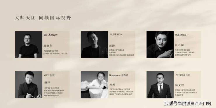 聚集享誉业界的团队——gad杰地设计、31.DESIGN、GVL怡境、德森建筑设计、NNS纳沃设计、Bluemoon布鲁盟