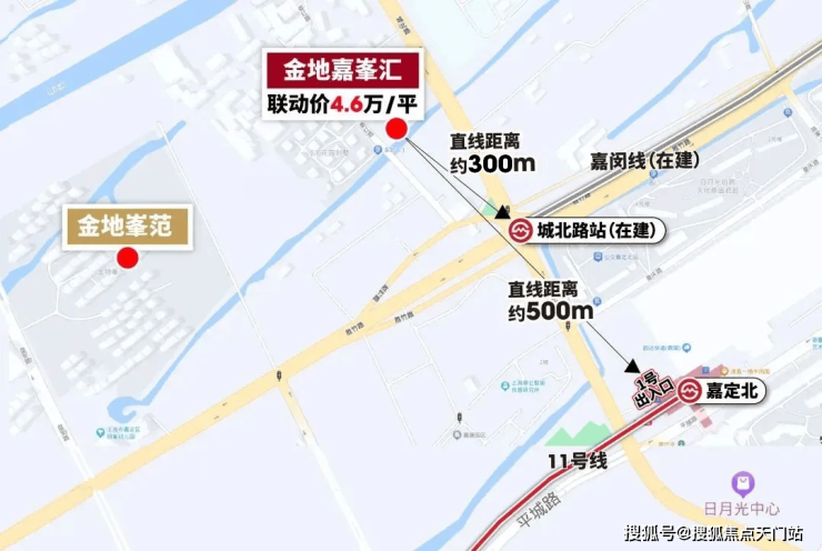 地铁方面金地嘉峯汇直线距离11号线约500米,直线距离嘉闵线(在建中)约300米。