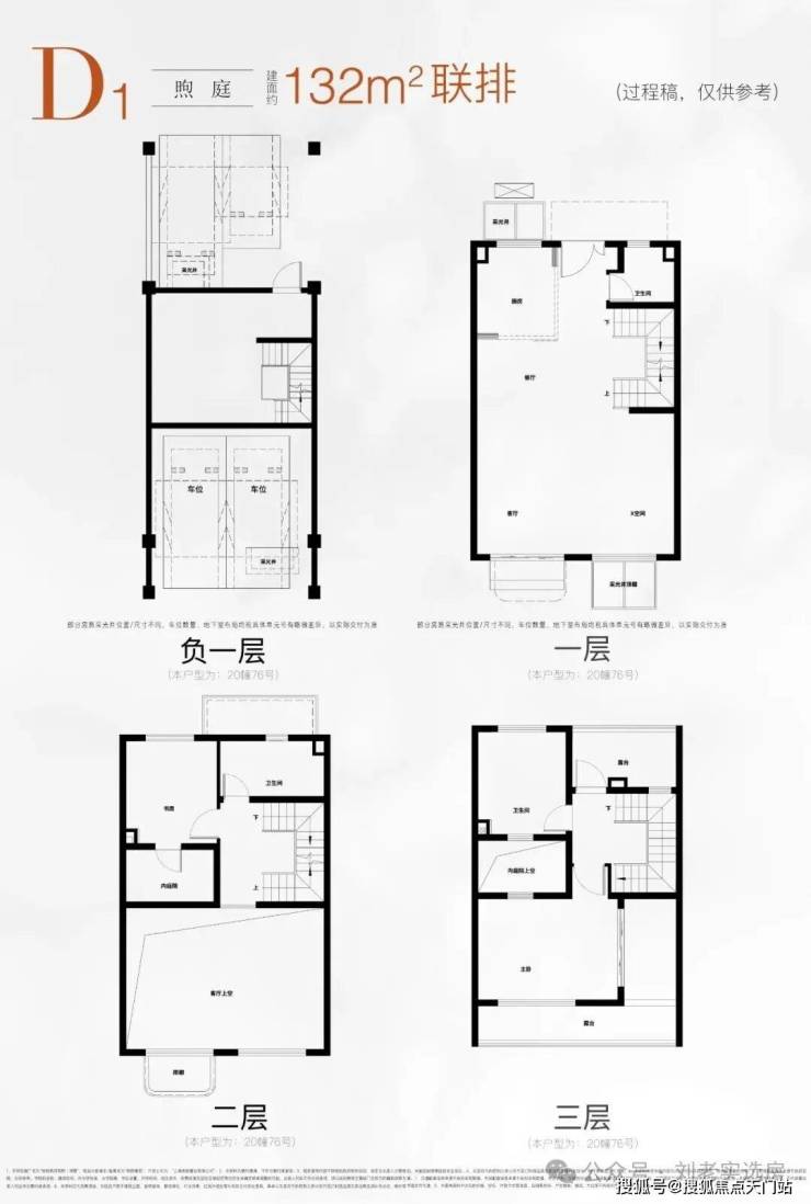 建面约132-195㎡联排别墅,一院一厅间的无界私院, 拥有前庭后院+超大挑空+南北双星空露台+室内庭院等超享空间。