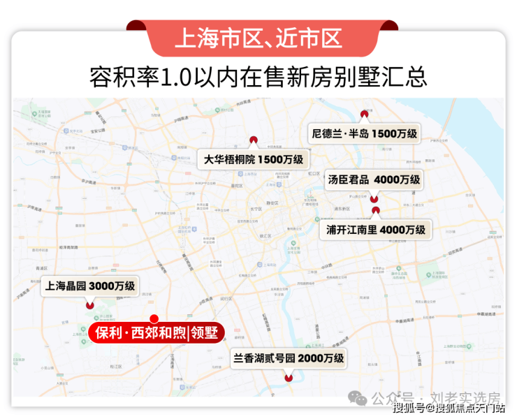 再来看上海目前在售的新房,容积率低于1.0的项目,仅有寥寥十几盘而已,而近市区的低密别墅总价1500万起步,动辄上4000万。