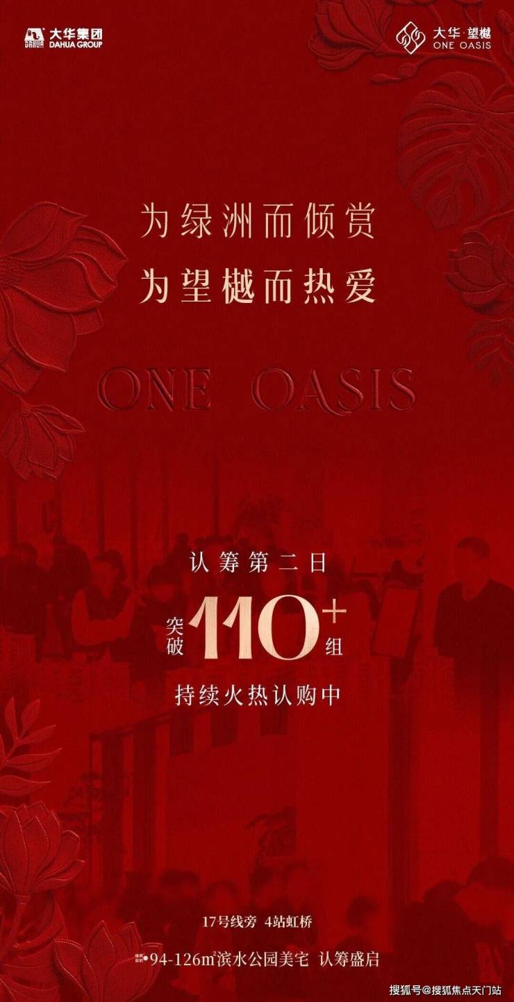 最新消息,1月20日,大虹桥核芯低密住区「大华·望樾」,首批次房源火爆认筹截止,成为2026开年首个认购破100%的楼盘!
