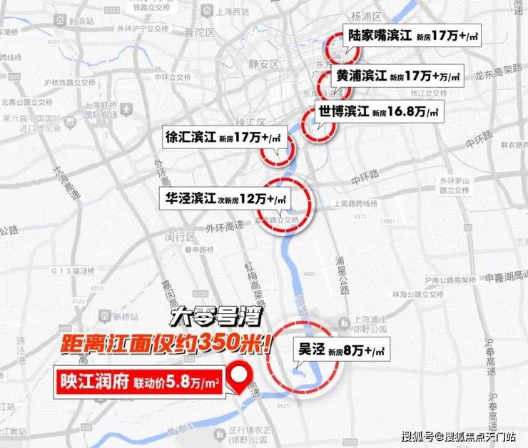 要知道,上海这座城市的历史底蕴和未来顶层规划一直都深藏在黄浦江两岸,目前中环内一线滨江的住宅价格基本都超过17万/㎡。映江润府隔壁的吴泾也超过8万/㎡。