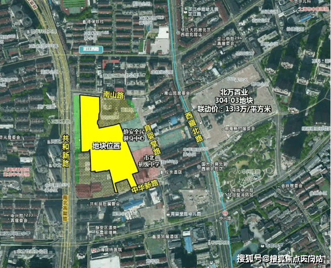 项目东面就是北万置业地块,仅隔一条西藏北路,直线距离约400米,该地块房地联动价为13.3万/㎡。静安区洪南山宅240街坊项目未来入市价格可供参考。