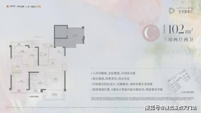 以及我们的建面约102㎡(C户型)三房两厅两卫,不仅保留了其小户型所有的优势,更增强了空间感和舒适度!