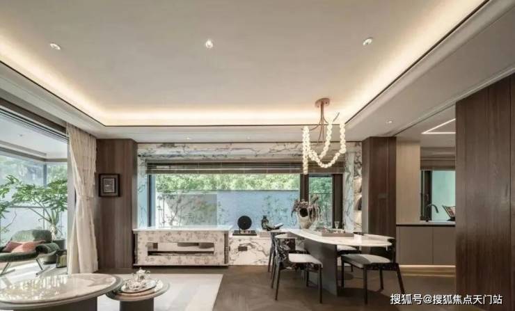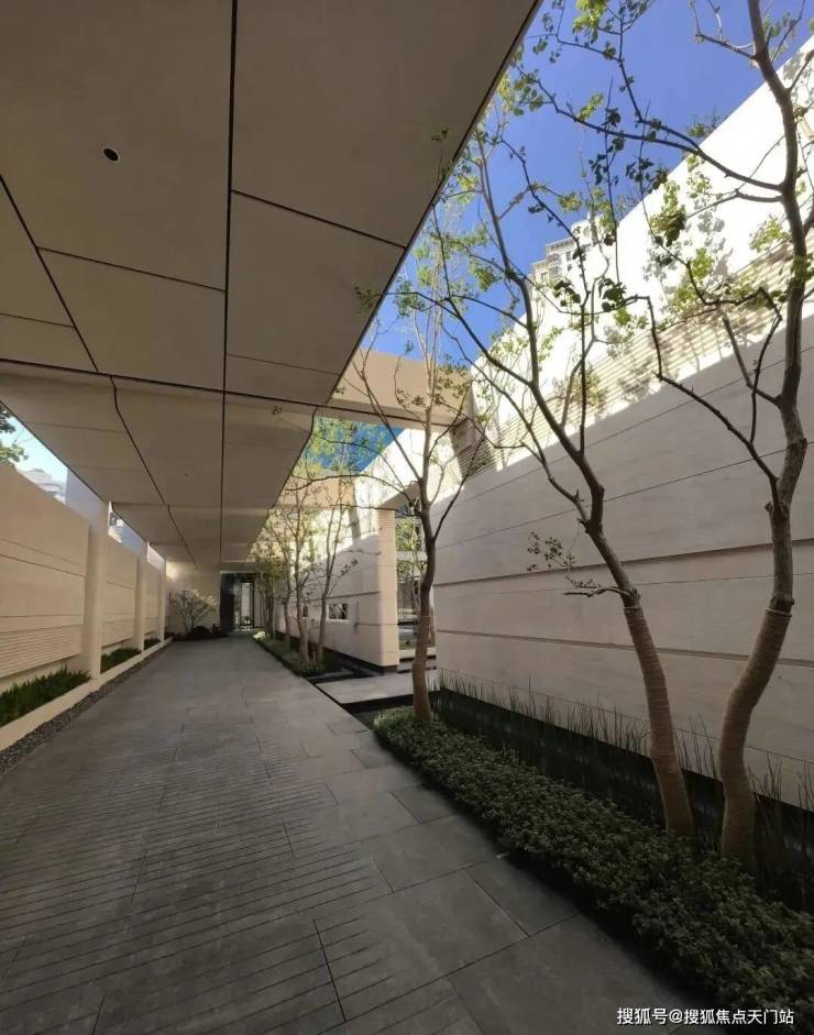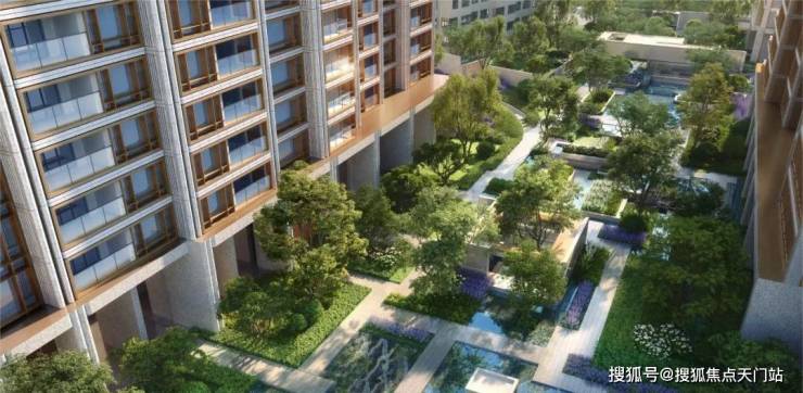 同时也得益于两个地块融合在一起形成了完整地块,项目打造了约160米超长中轴,约4000㎡中轴景观,约700㎡落玉水院、下沉庭院以及私属入户花园。