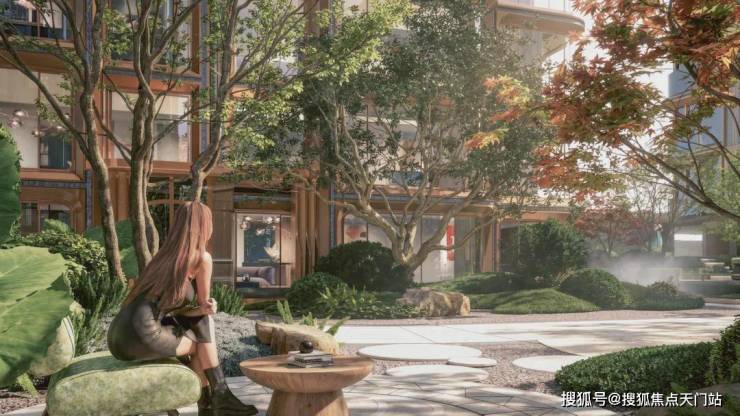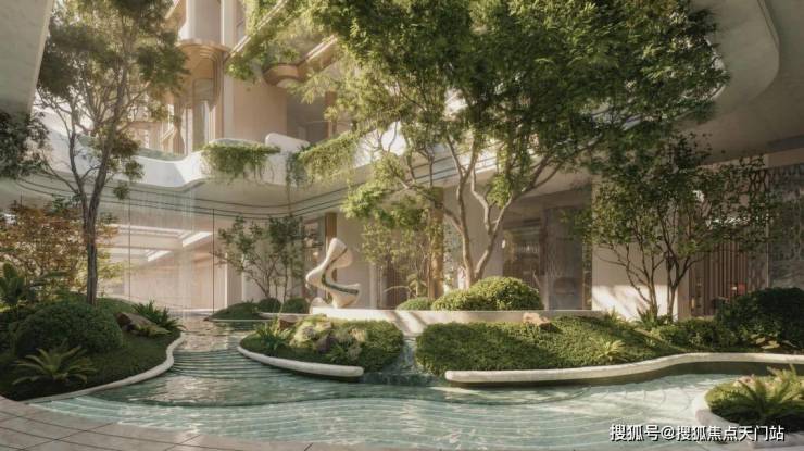 更是通过抬板的优势,设计了立体景观、垂直绿化、下沉庭院的景观,铺陈出一步一景的园林盛景。