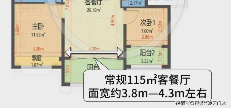 115-120㎡的高层产品,客餐厅的面宽大多都在3.8-4.3米左右。