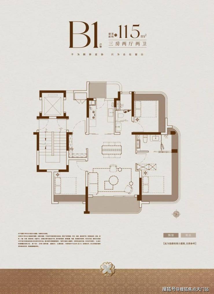 约4.9米客厅面宽的115㎡3房!