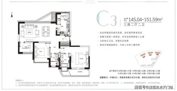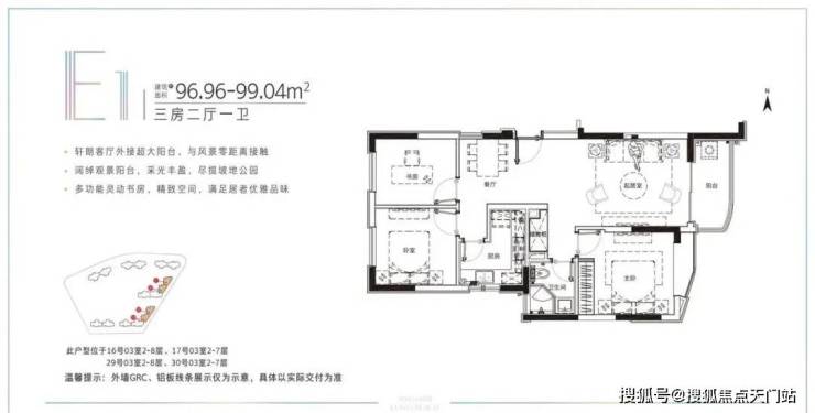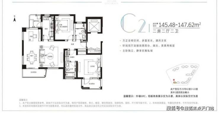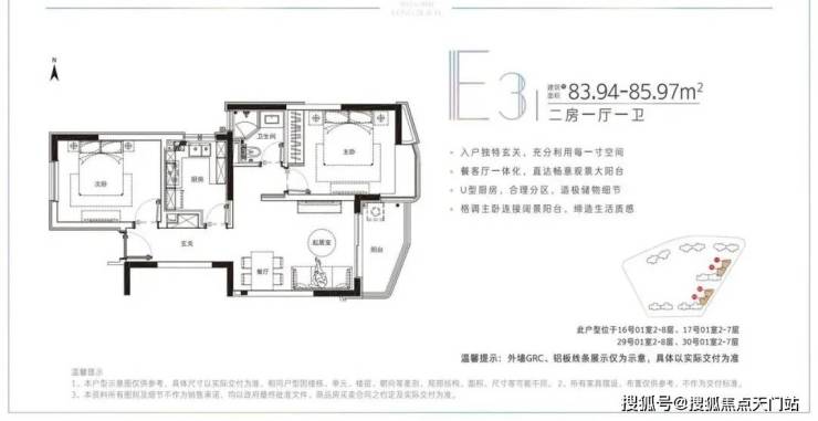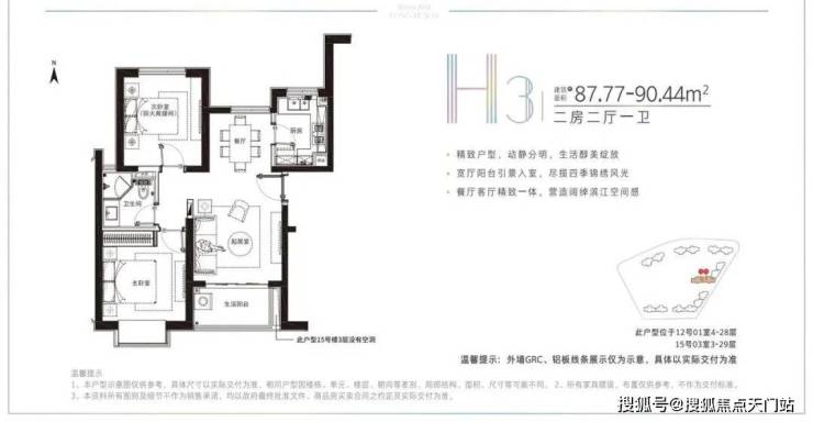 建面约78-91.22平米的小户型,两房两厅一卫的格局,非常适合年轻刚需家庭上车。