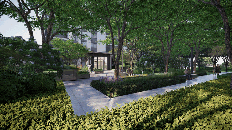 项目精心规划“一环一轴三园”,于建筑中另辟一方天地,以绿意包裹整个小区,打造绿氧环绕的公园住区。漫步在花园小径,呼吸新鲜氧负离子,在自然中享受阳光微醺和清新绿意,在生机盎然中安享静谧。